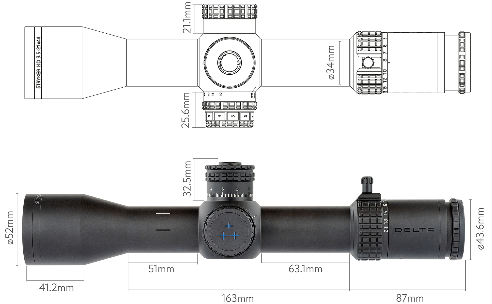 Constructed from durable aircraft-grade aluminium, the Delta Stryker 3.5-21 stands up to the rigors of the field, being shockproof, waterproof, and fog proof – making the perfect pairing for your most extreme outdoor adventures.