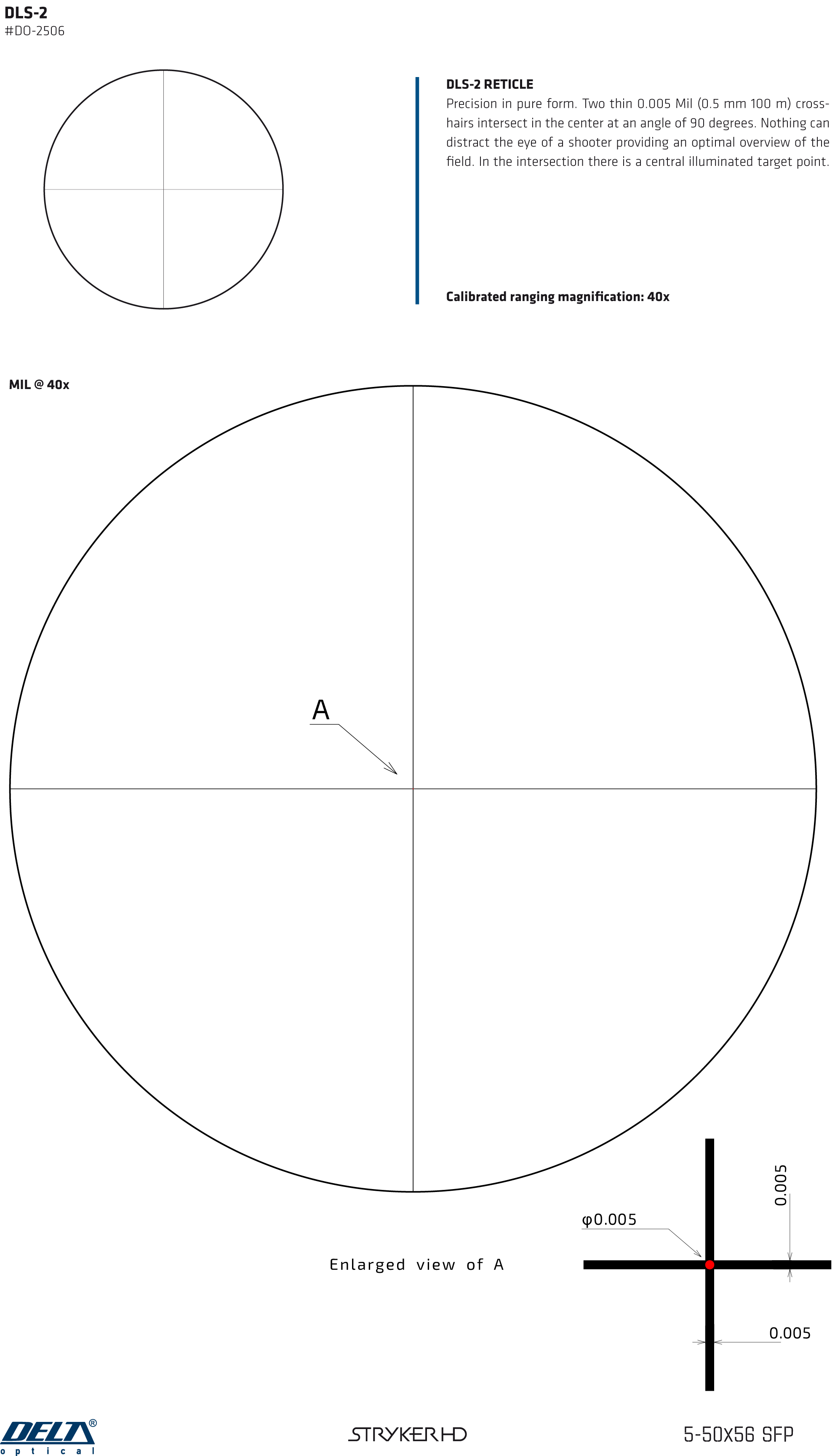 Stryker 5-50x56 HD is also available in 1/8 MOA clicks when paired with DLS-3 reticle which is simply yet effective MOA spaced reticle.