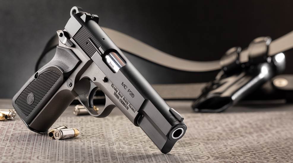 Girsan MCP35 9mm Luger 4.87in Matte Black Pistol – 10+1 Rounds – Made with serious respect to John Browning classic design, the MCP35 pays homage to one of the most widely used military handgun designs in the world. Originally designed as a military pistol, it necessitated extreme accuracy and the Girsan MC P35 does not disappoint. The short recoil 9mm, 4 5/8in barrel, along with the slide, allow for quick second shot resets, getting the shooter on target faster. The traditional slim trigger allows for a short trigger reset.